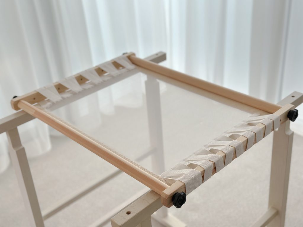 初回のレッスンでは、刺繍枠にシルクオーガンジーを張ることからスタートし、リュネヴィル刺繍の基本のステッチを練習します。