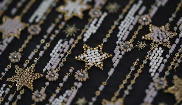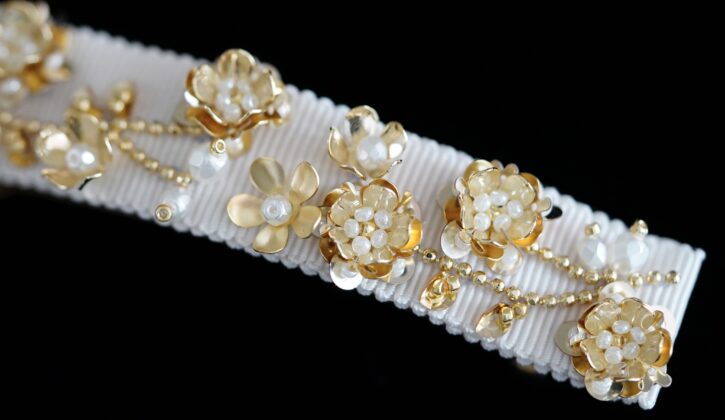 書籍《はじめてのオートクチュール刺繍》の表紙に掲載された作品Ciel Nocturneのデザインを一部変更したものになります。