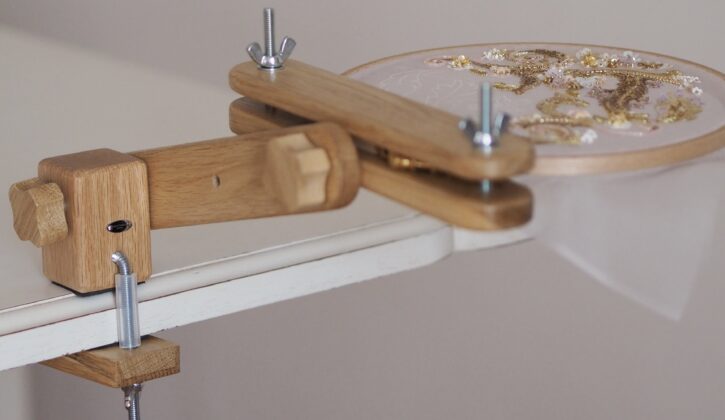 テーブルや机に固定することで、両手が使えるため、リュネヴィル刺繍を始めとした様々なジャンルの刺繍にお使いいただけます。