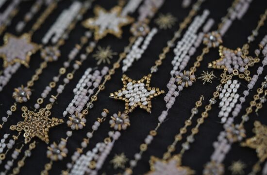 「クロシェ・ド・リュネヴィル」と呼ばれる、オートクチュールの刺繍には欠かせない技法を用い、厳選した素材で製作しています。デザインから制作まで丁寧に取り組み、唯一無二の作品づくりを心がけています。
